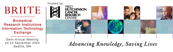Biomedical Research Institutions Information Technology Exchange Semiannual meeting, 22-24 September 2004