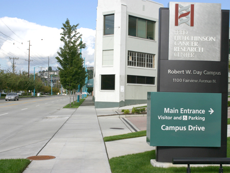 you will see the sign directing you to the FHCRC main entrance.