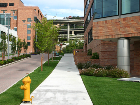 You will be walking through various bits of landscaping, heading toward the PHS Building main entrance. | |